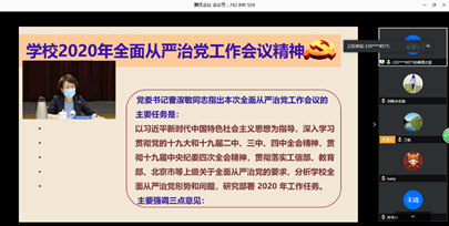 6月3日下午,世界杯体育官方网站召开了学习学校2020年全面从严治党工作会议精神全院大会,同时分党委书记王少萍做了“党风廉政建设永远在路上”的专题党课,会议通过视频会议方式召开,学院全体教职工和学生党支部书记参加了本次会议。