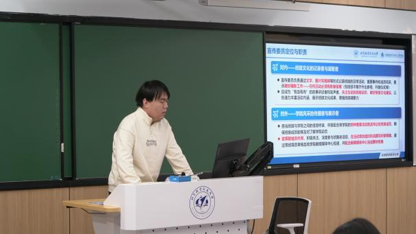 学生会宣传一部部长魏猛宇讲解了推送制作的完整流程,涵盖内容撰写、排版美化到发布规范等。
